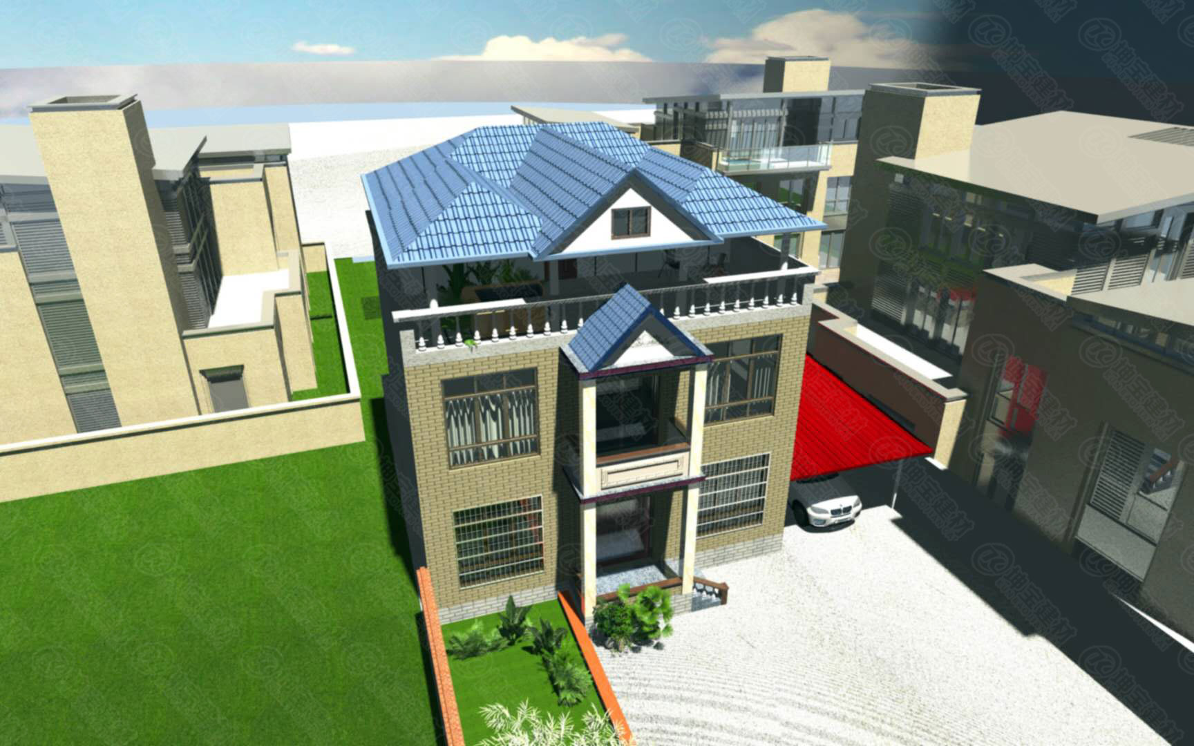 甘肅隴南的高老板為客戶用CAD軟件,設計的別墅屋面瓦整體效果圖