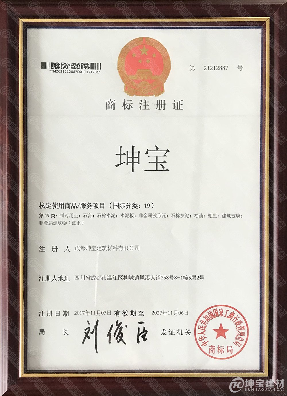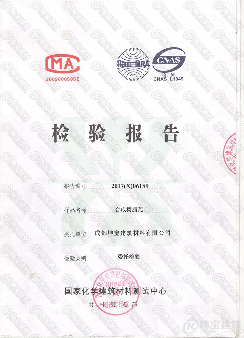 成都坤寶建筑材料有限公司一直堅持走“綠色、低碳、環保、節能”宗旨,致力在各界政府行業協會的幫助下,成為315誠信品牌單位,是成都坤寶建筑材料有限公司的榮耀,也是““坤寶合成樹脂瓦”品牌的見證。