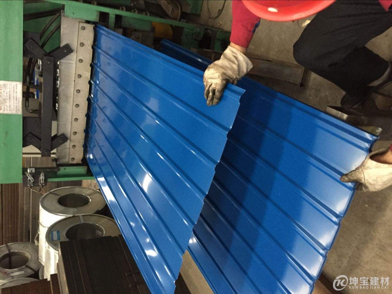 由鍍鋁鋅鋼板制成的彩色瓦片;在工地上比較常見(jiàn),適用于工棚、車棚、臨時(shí)搭建房,因?yàn)樗p又牢固。不足之處在于保持期在十至十五年,所以作為常住房比較麻煩,需要經(jīng)常更換,維護(hù),作為臨時(shí)搭建棚就比較劃算方便了。