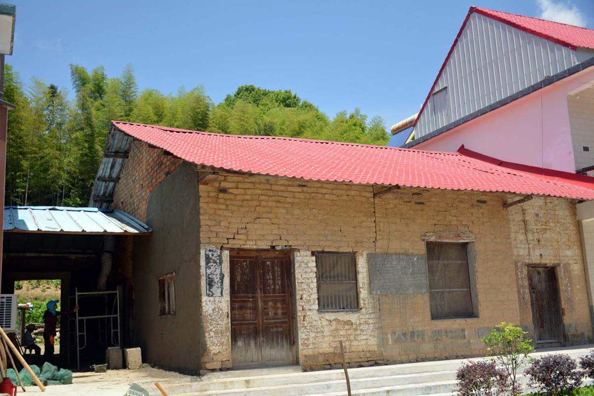 圖為工人在用粉刷墻壁。老屋是用土磚砌起來的,以前,屋頂上蓋的是泥巴瓦,現(xiàn)在,房子的主人將其換成了紅色樹脂瓦。村民說,要像儲大叔保護(hù)上馬石一樣保護(hù)老房子,說不定將來這樣的房子成為村里的一道景點。