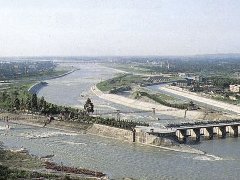 秦蜀郡太守李冰建堰初期,都江堰名稱叫湔堋,這是因?yàn)槎冀吲缘挠駢旧剑貪h 都江堰風(fēng)景 以前叫湔山,而那時(shí)都江堰周圍的主要居住民族是氐羌人,他們把堰叫做堋,所以都江堰就叫湔堋。 三國(guó)蜀漢時(shí)期,都江堰地區(qū)設(shè)置都安縣,因縣得名,都江堰稱都安堰。同時(shí)