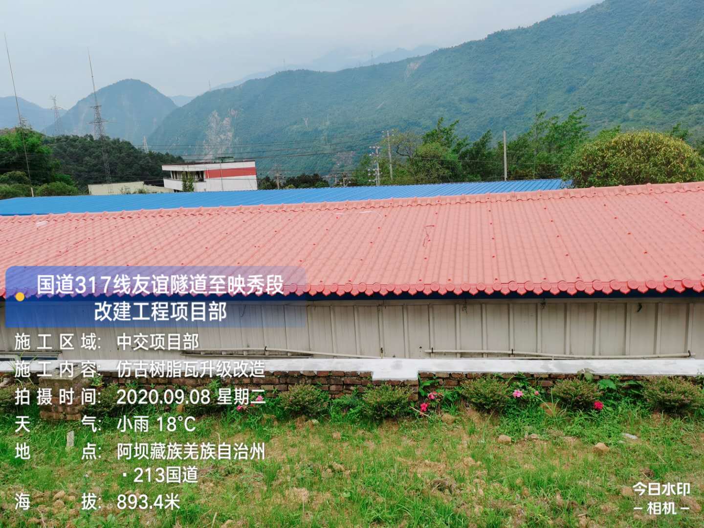中交路橋集團國道317線隧道至映秀段改建工程項目部屋頂加蓋樹脂瓦工程,接下來看樹脂瓦加蓋屋面的部分效果!