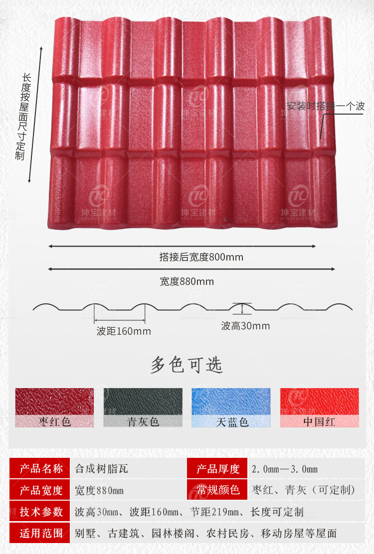 | 顏色:棗紅、青灰、藍色等 | 波高:30mm |